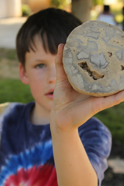 But then he had a very generous and kind geologic benefactor who donated her late father's rock collection to this little boy. She made his entire month. He was quivering with excitement over the prospect even though he only had a guess as to what she was bringing over. Turns out she gave him more cool rocks than he could imagine even in his wildest dreams. His eyes were shining with joy as he carefully looked over each rock, one by one. He carried one or two around with him for about a week. And now, they are all nestled snugly in a box that he keeps right next to his bed. He wants to pack them all in his backpack to bring in the van on our big move. But again, that mean mom gets in the way. I think he will breathe a great sigh of relief when he unpacks them in our new home and finds them all safe and sound.