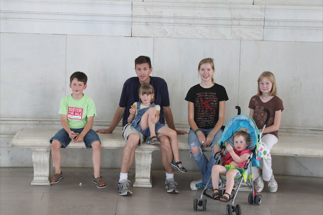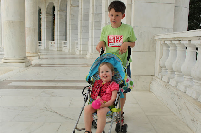 I wanted to go back to Arlington Cemetery because we never made it to the Tomb of the Unknown last week. I remember what an impact it had on me when I visited it as a teenager, so I was hoping my girls would catch some of the gratitute, reverance and patriotism that you can find just floating in the air at places like this. Sadly, the heat and their impatience seemed to interfere with my plan. They didn't want to wait to watch the next full changing of the guards. So they wandered off with Shaggy to go look at some other memorials while I waited patiently at the tomb. It was probably for the best, my youngest three would never have been able to keep their traps shut during the somber ceremony and would have likely ruined the moment for everyone present.