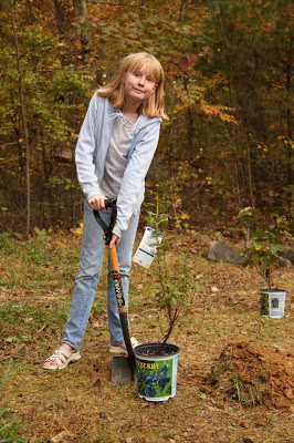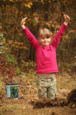 I think I see blueberry pie, and blueberry muffins, and blueberry pancakes in your future. I hope your bushes grow as beautifully as your five little weeders appear to be growing in their wonderful new location.