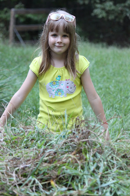 Weeds thrive around here, along with everything else green and growing. Since we've never had any kind of garden or flower beds before, the kids got their first taste of pulling weeds. Some of them had more fun than others.