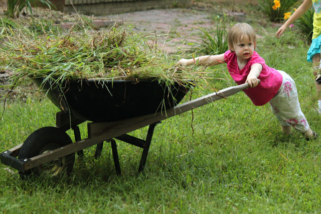 They definitely liked the inherited wheelbarrow more than the actual weeding.