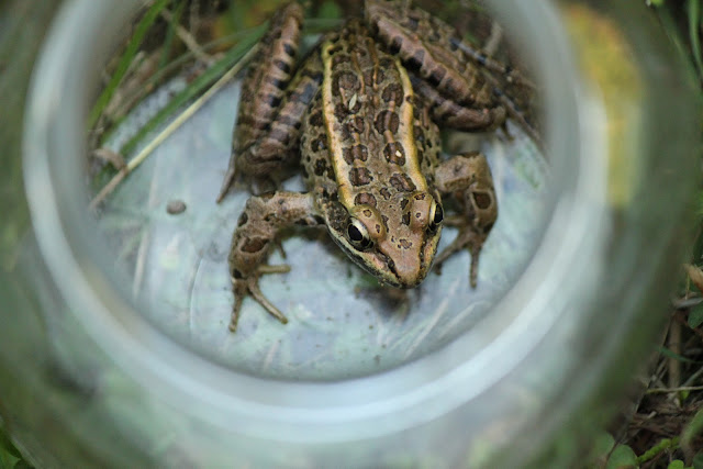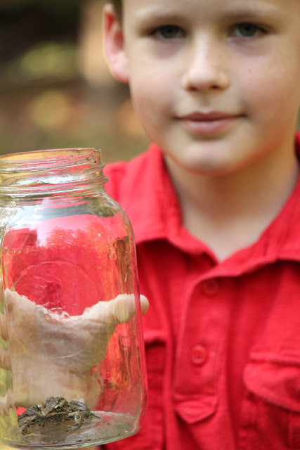 I've been doing a fair amount of frog catching with my boy. And I've learned a thing or two along the way. A jar is necessary. Or a box. Unless you happen to like holding slimy, squirmy things.