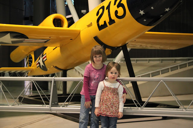 R was the ultimate tag-along kid, just happy to be there, as long as B didn’t butt in and push too many buttons on the flight simulator games she was working on. When that happened, she started wailing at the top of her lungs, her young and healthy voice echoing off the walls of the sparsely populated museum. B responded by also joining in the wailing. We tried to laugh it off and drag them away from the contention-causing educational interaction.