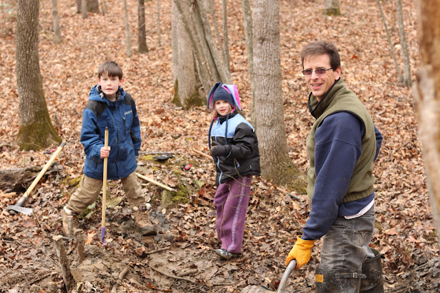 We began a family project of sorts on my birthday. Building a dam. And yes, the day was full of dam jokes. Those near swears just never get old for my husband. My contribution was mostly just moral support and photo documentation. All the heavy work was done by Shaggy and J.