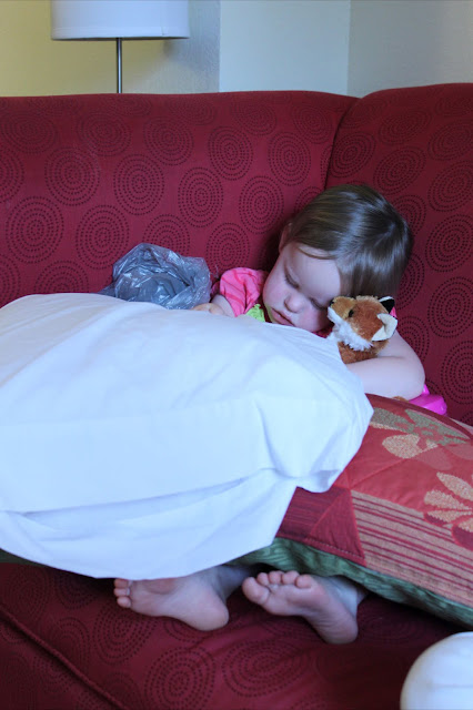 So we immobilized her. In the kindest, comfiest way we could--with cartoons and pillows. It was so comfy that she promptly fell asleep.