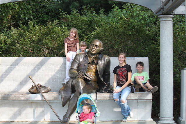 I wanted to go back to Arlington Cemetery because we never made it to the Tomb of the Unknown last week. I remember what an impact it had on me when I visited it as a teenager, so I was hoping my girls would catch some of the gratitute, reverance and patriotism that you can find just floating in the air at places like this. Sadly, the heat and their impatience seemed to interfere with my plan. They didn't want to wait to watch the next full changing of the guards. So they wandered off with Shaggy to go look at some other memorials while I waited patiently at the tomb. It was probably for the best, my youngest three would never have been able to keep their traps shut during the somber ceremony and would have likely ruined the moment for everyone present.